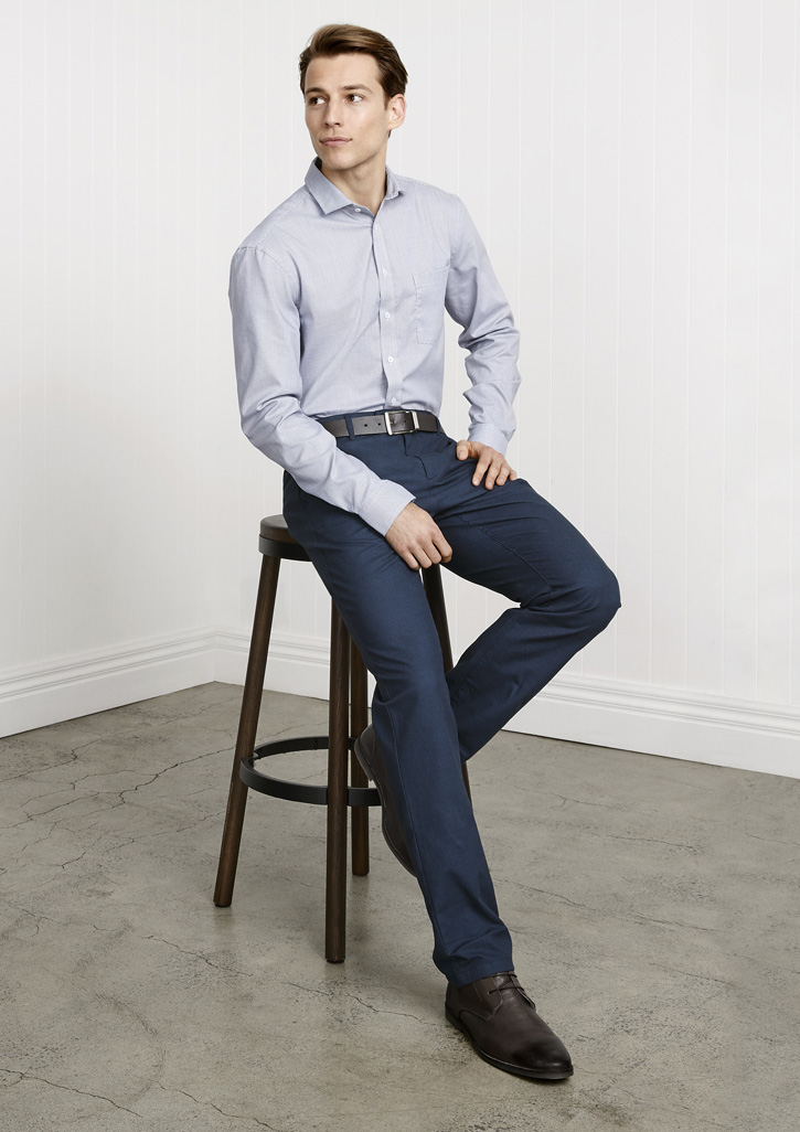 Designed for a those seeking a more sophisticated relaxed uniform, this contemporary pant with on trend jacquard patterned cloth provides a subtle visual texture and elevates the overall appearance. Natural breathable cotton fabric with added elastane is easy-care and comfortable to wear.