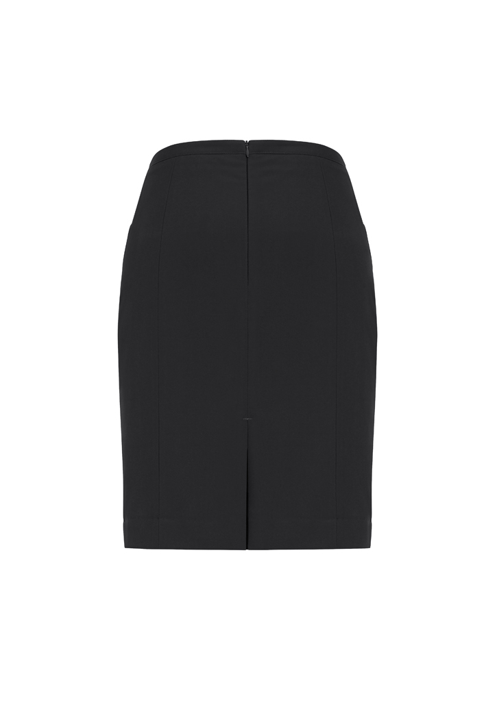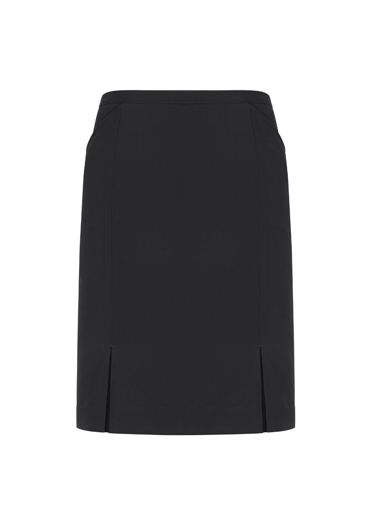 Knife pleats on the front emphasize the skirt’s fluidity, whilst the back split adds comfort and ease of movement.